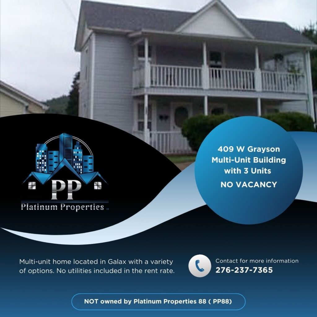Multi-unit home located in Galax with a variety of options. No utilities included in the rent rate. Contact for more information.